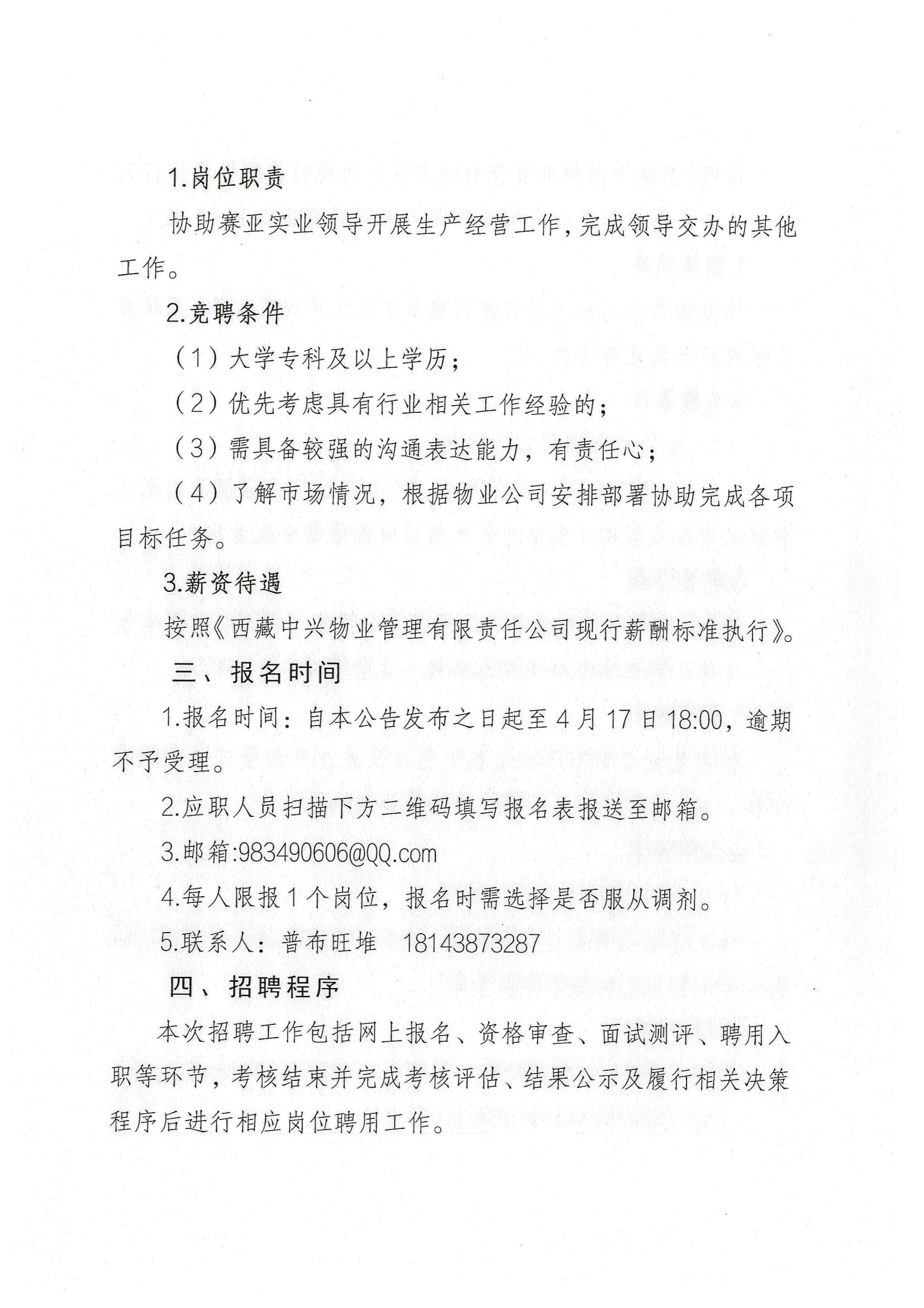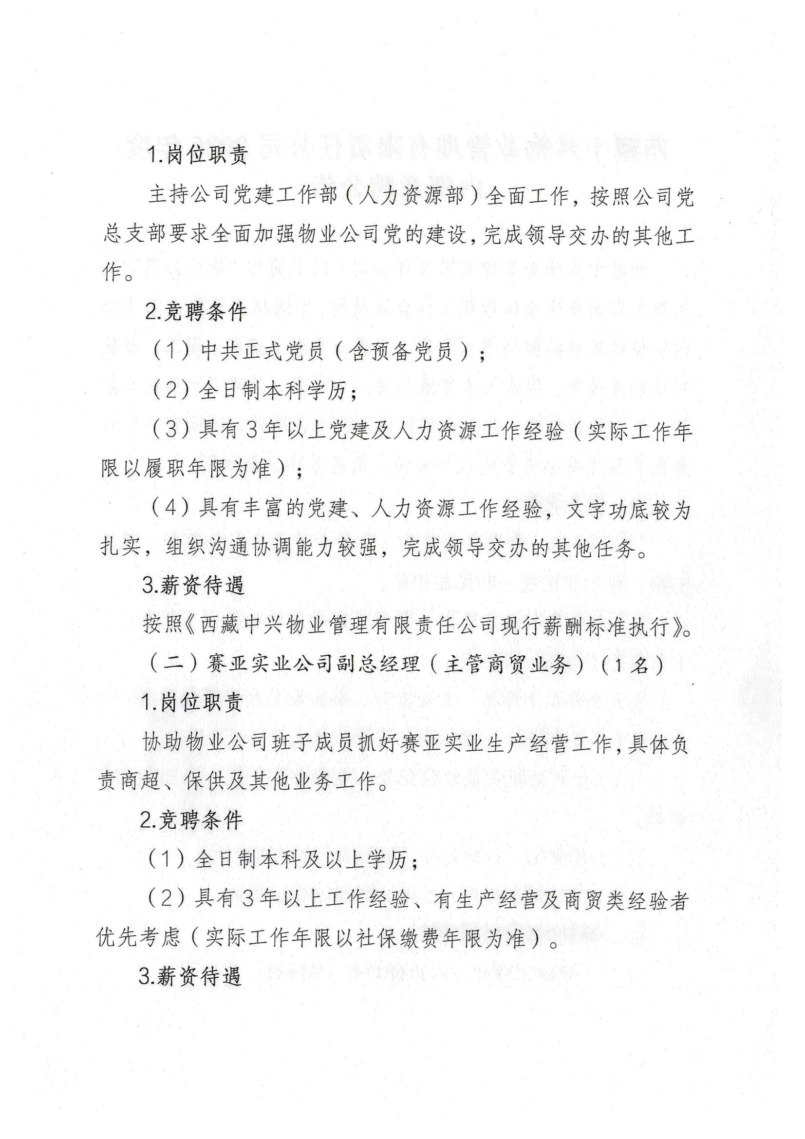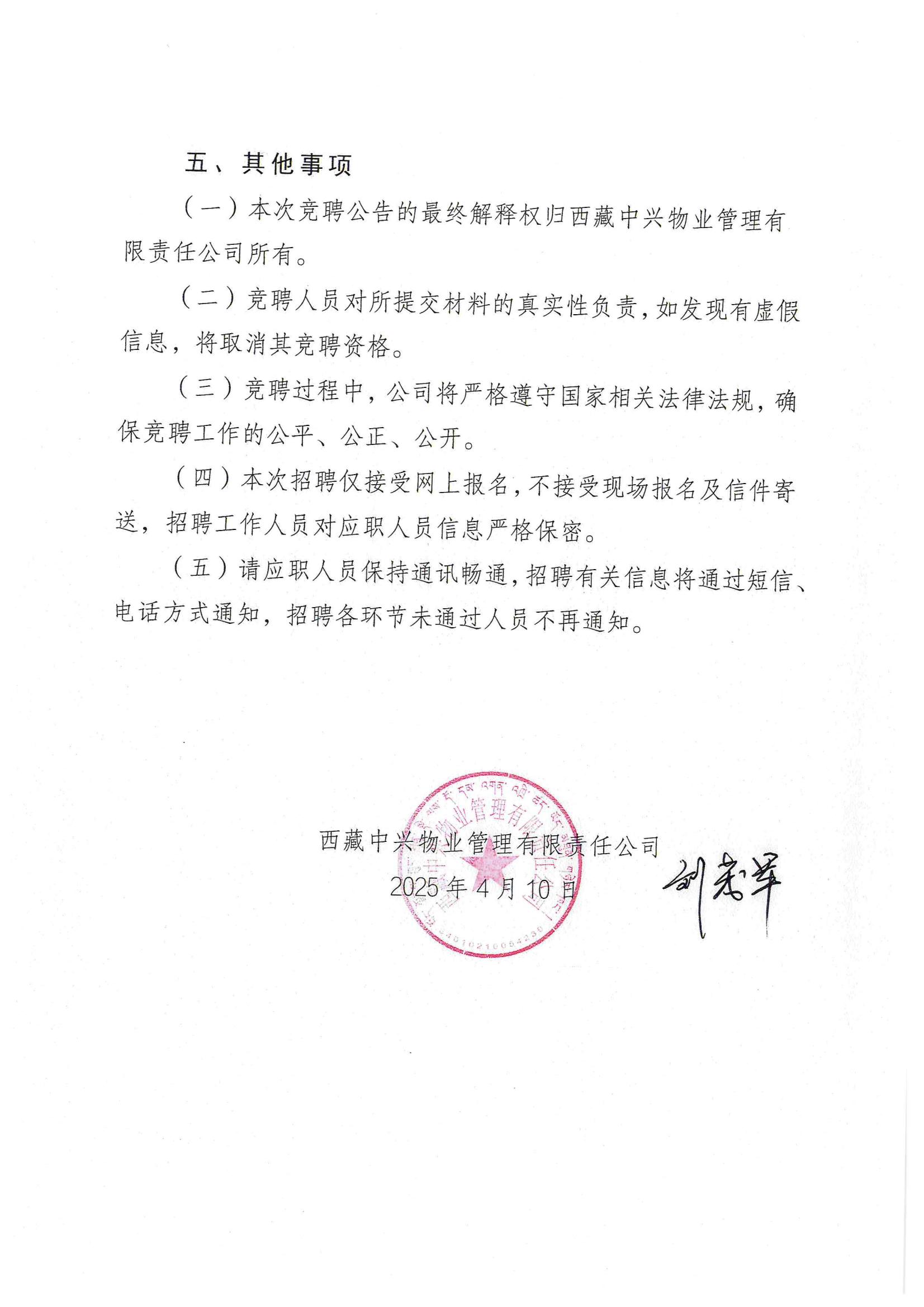 西藏中興物業(yè)管理有限責(zé)任公司2025年度內(nèi)部競聘公告
