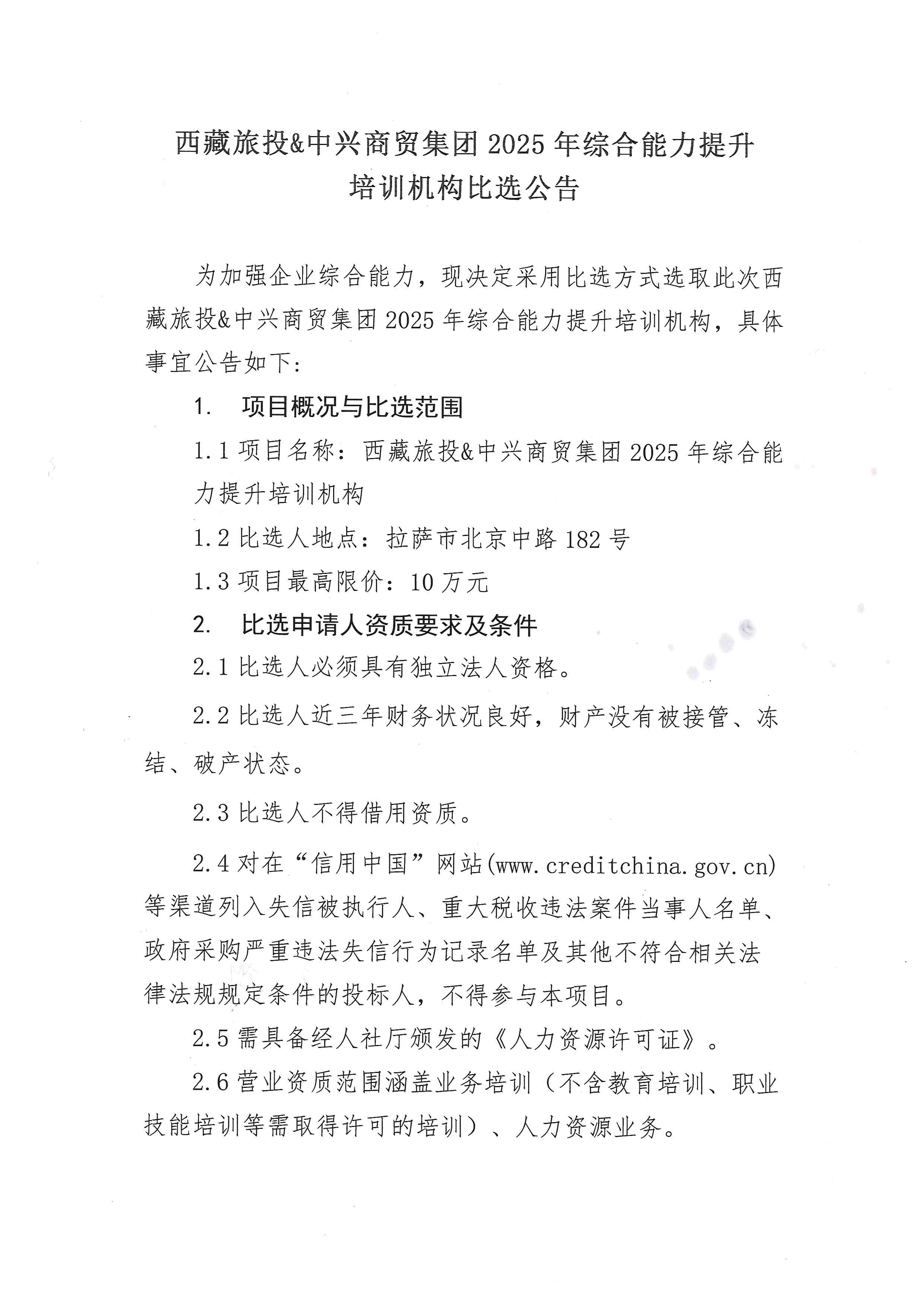 西藏旅投&中興商貿(mào)集團2025年綜合能力提升 培訓機構(gòu)比選公告