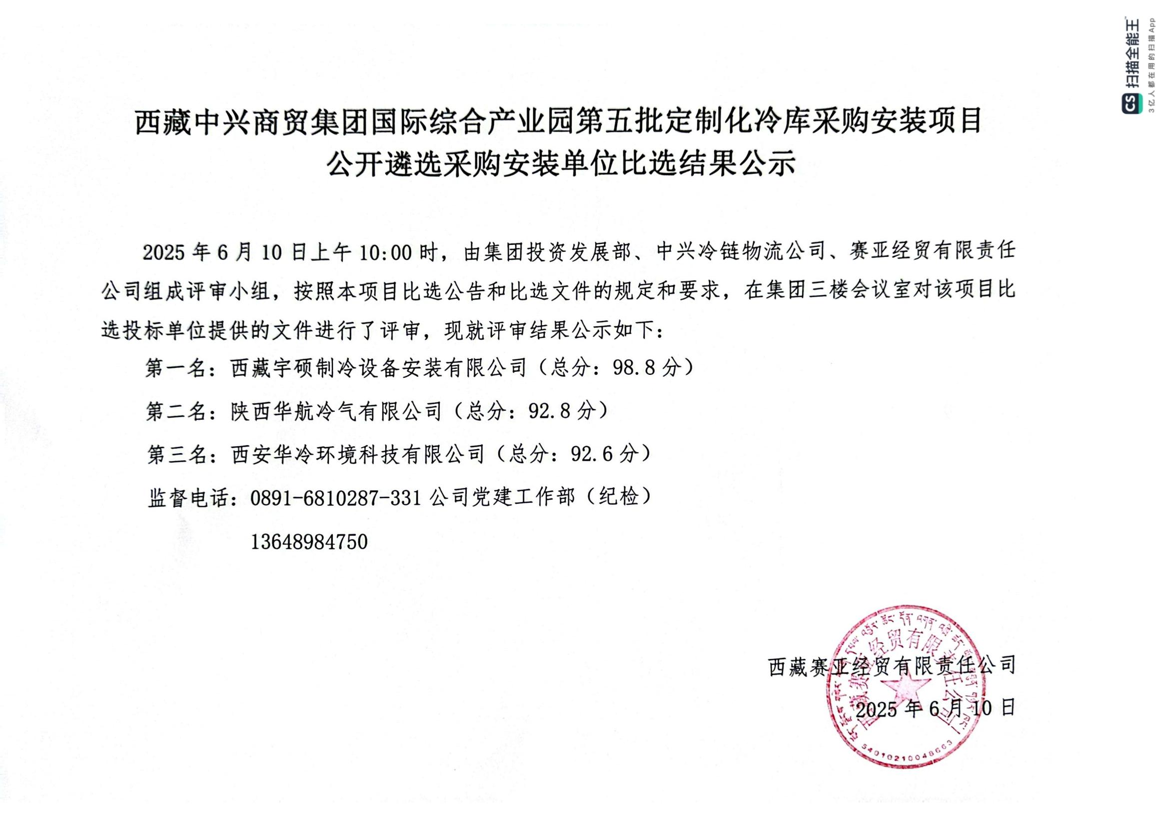 西藏中興商貿(mào)集團(tuán)國際綜合產(chǎn)業(yè)園第五批定制化冷庫采購安裝項(xiàng)目公開遴選采購安裝單位比選結(jié)果公示