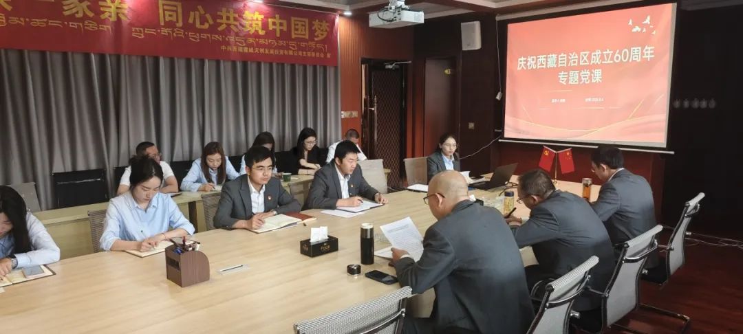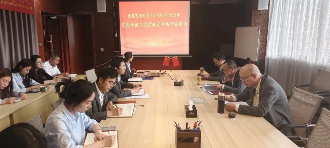 ???????????????????????????????????????????????????????????????????????????為熱烈慶祝西藏自治區(qū)成立60周年,深入學習貫徹西藏自治區(qū)成立60周年經(jīng)濟社會發(fā)展成就相關(guān)精神。2025年8月7日,西藏雪域天創(chuàng)開發(fā)有限公司黨支部在公司會議室組織開展慶祝西藏自治區(qū)成立60周年宣講會,會議由支部委員、總經(jīng)理江小舟主持,全體干部職工參會。